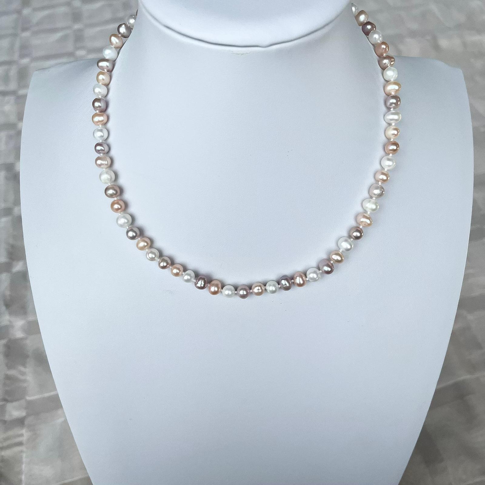 Ce collier composé d'une rangée de petites perles de culture blanches roses saumons est très féminin.