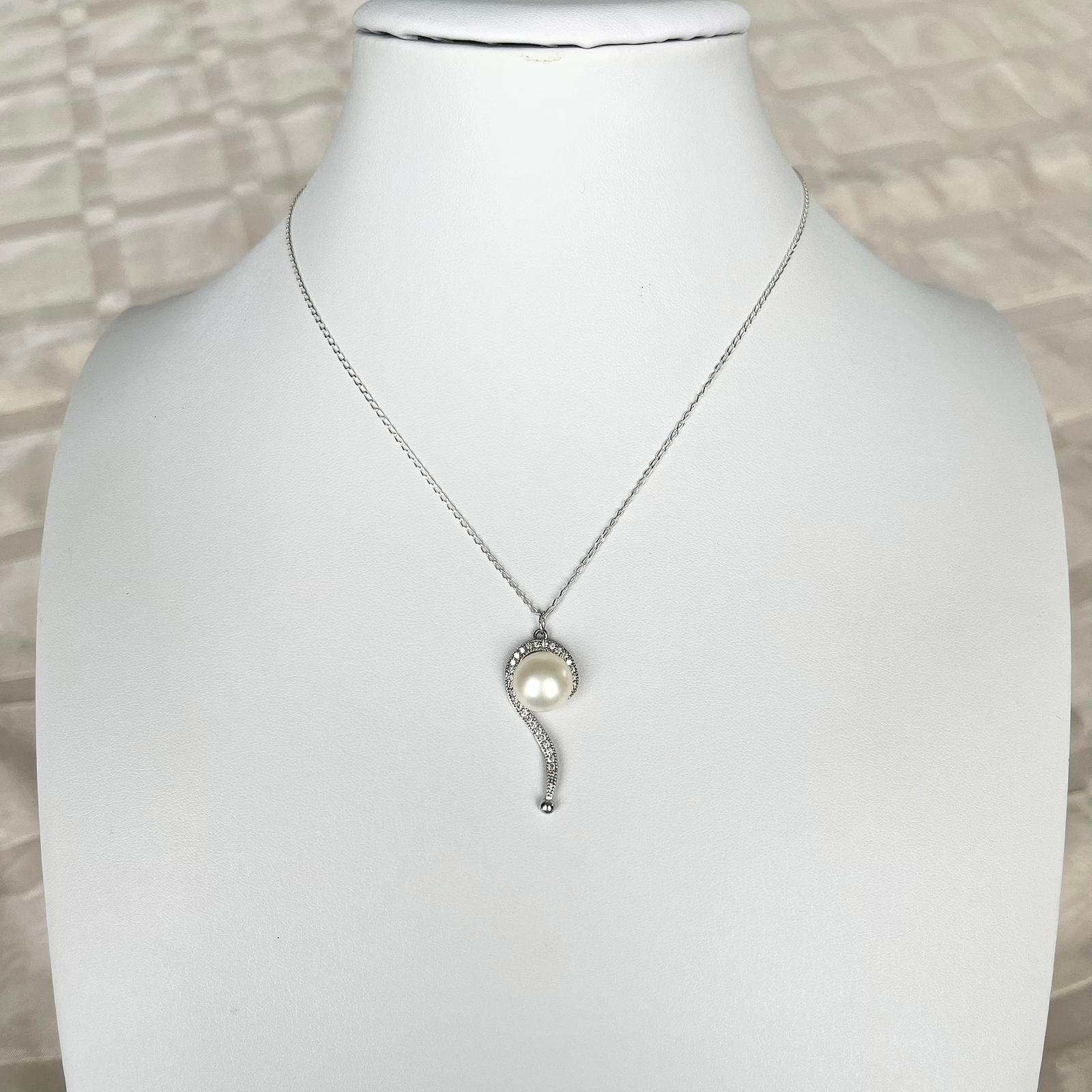 Cette chaine avec sa grosse perle de culture blanche avec le contour décoratif en zirconium est simplement très jolie.