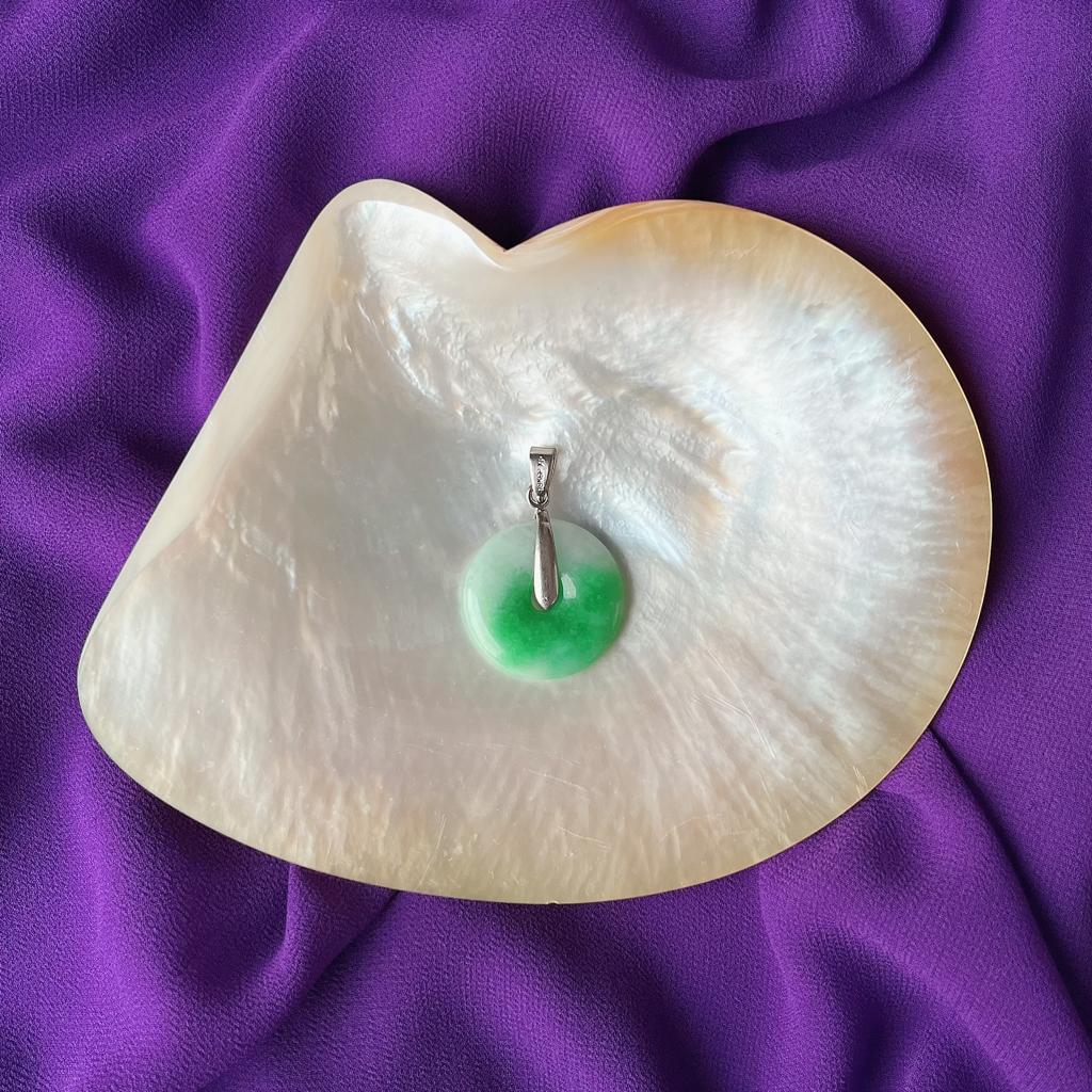 Ce joli pendentif en Jade est un classique en Asie, symbole de longévité. A noter que le Jade n'est pas que vert, il en existe une multitude de couleurs.