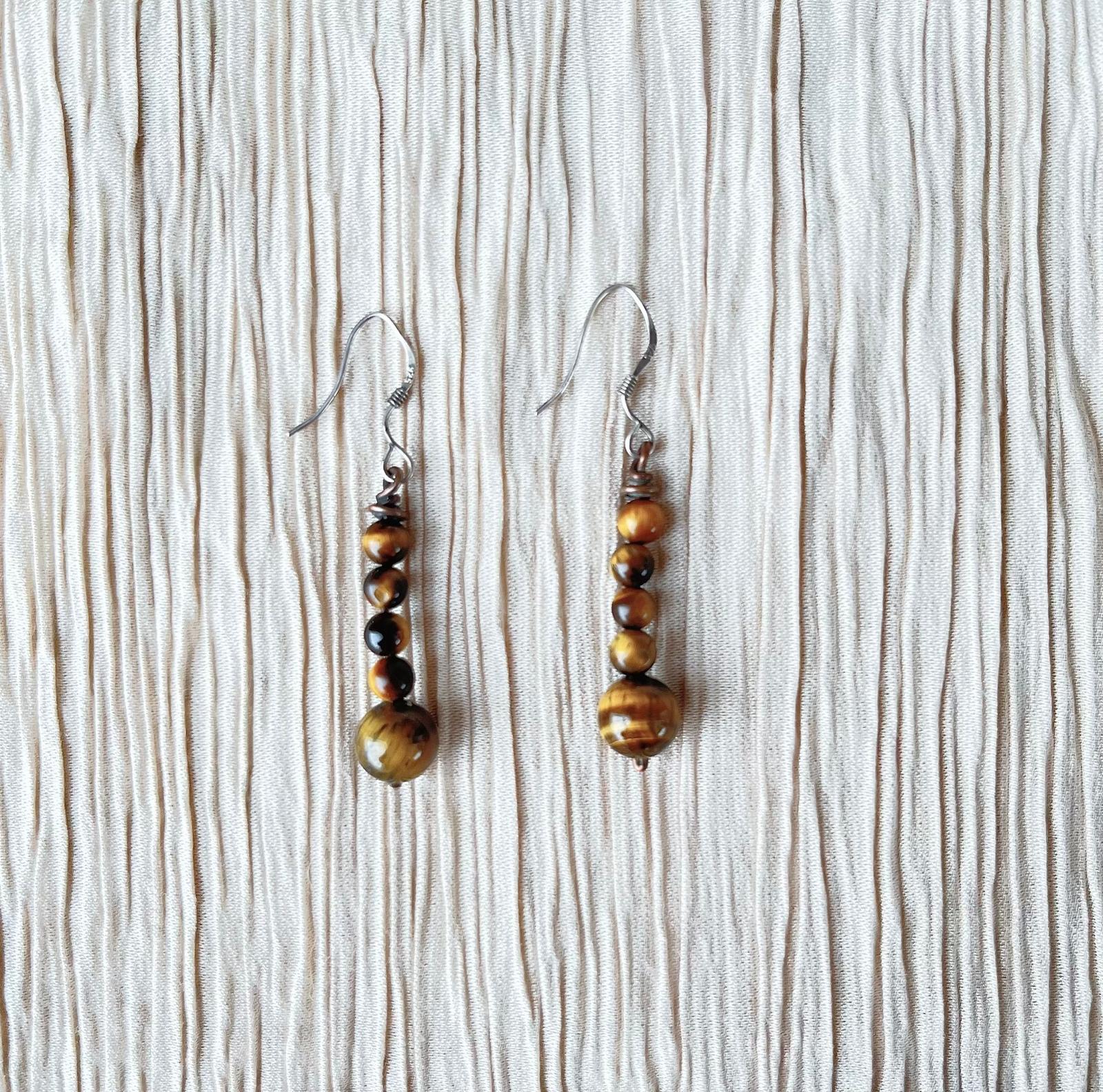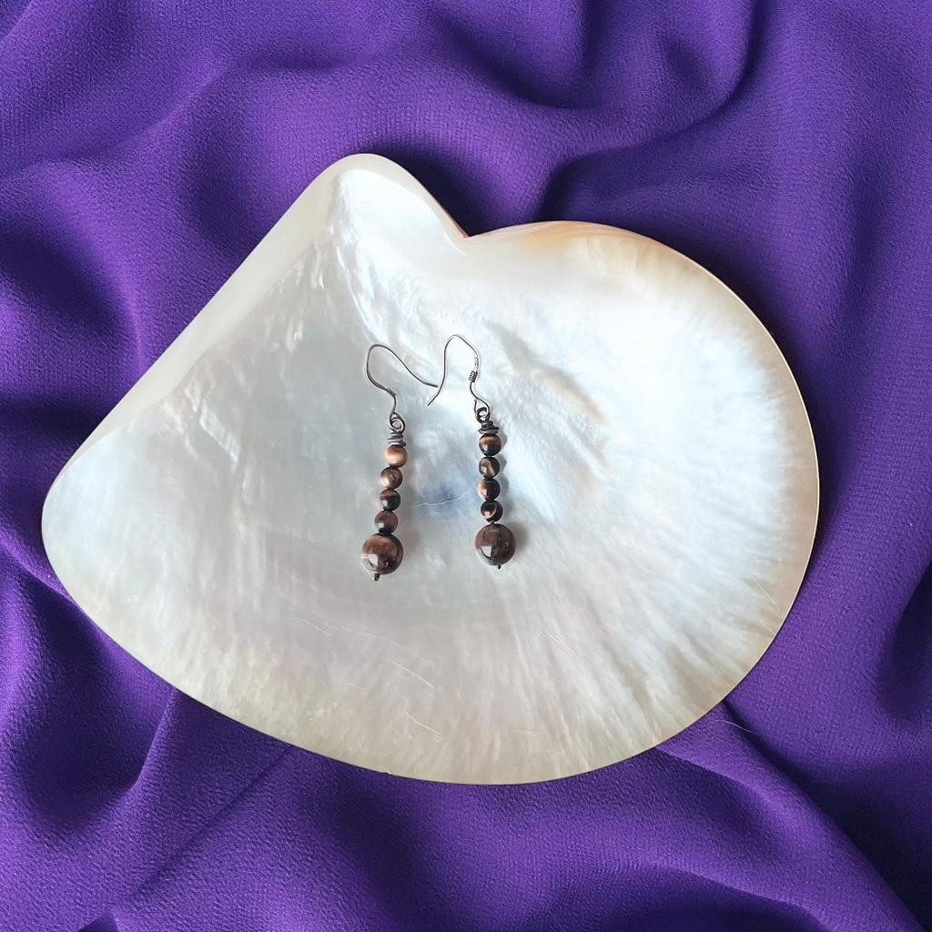 Ces boucles d'oreille sont en acier inoxydable. Marron pour l'œil du tigre. En Feng Shui, cette pierre est utilisée pour purifier, protéger et éloigner toutes influences négatives autour de vous. Noir pour l'hématite, pierre équilibrante du corps et de l'esprit. Rose pour le quartz rose, qui renforce l'amour et la confiance en soi.